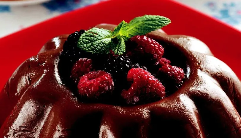 Tereyağını derin bir tencerede eritip, elenmiş unu ekleyin. Çırpma teliyle karıştırarak birbirine yedirin. Doğranmış çikolata, tozşeker, tarçın ve yıldız anasonu tencereye ekledikten sonra sütü katın. Sürekli karıştırarak pişirin. Koyulaşıp kaynamaya başlayınca tencereyi ocaktan alıp, yıldız anasonu içinden çıkartın ve kalıplara bölün. Oda sıcaklığında soğutun ve üzerini strech film ile kapatıp, 1 saat kadar buzdolabında bekletin. Dondurulmuş frambuaz ile süsleyip servis yapın.